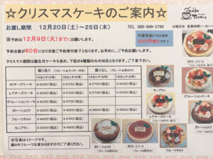『クリスマスケーキのご案内』